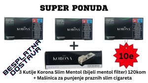 KORONA SLIM prazne cigarete 120 Bijeli filter sa ukusom mentola. 1,50 € -